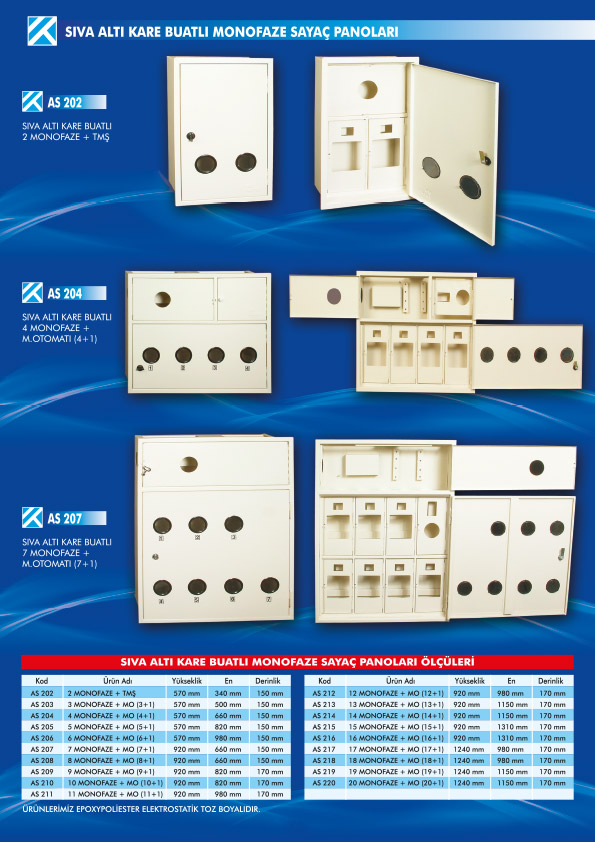 - SIVA ALTI KARE BUATLI MONOFAZE SAYAÇ PANOLARI