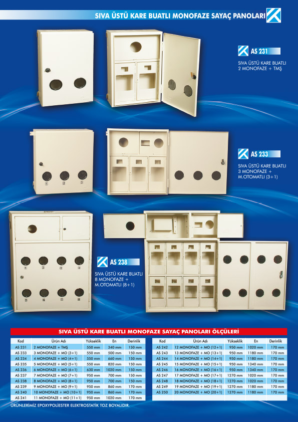 - SIVA ÜSTÜ KARE BUATLI MONOFAZE SAYAÇ PANOLARI