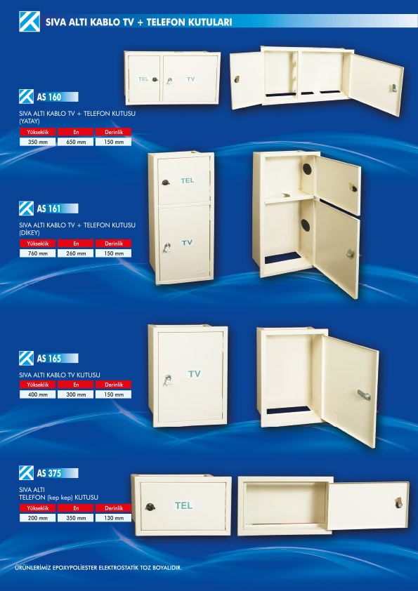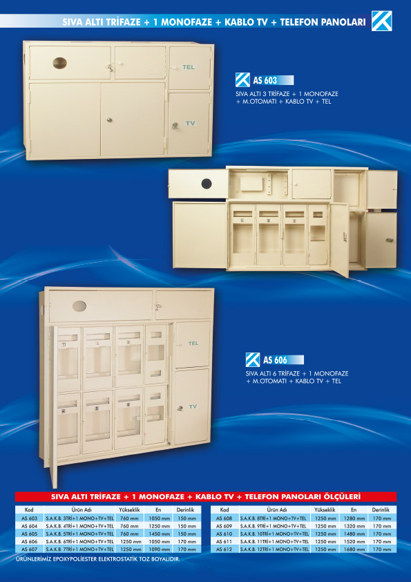 - SIVA ALTI TRİFAZE + 1 MONOFAZE + KABLO TV + TELEFON PANOLARI