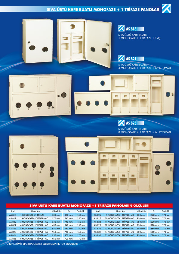 - SIVA ÜSTÜ KARE BUATLI MONOFAZE + 1 TRİFAZE PANOLAR