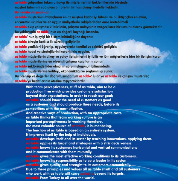 Деятельность As Tablo основывается на взаимопонимании и поддержке: каждый сотрудник вносит свою лепту в развитие фирмы.